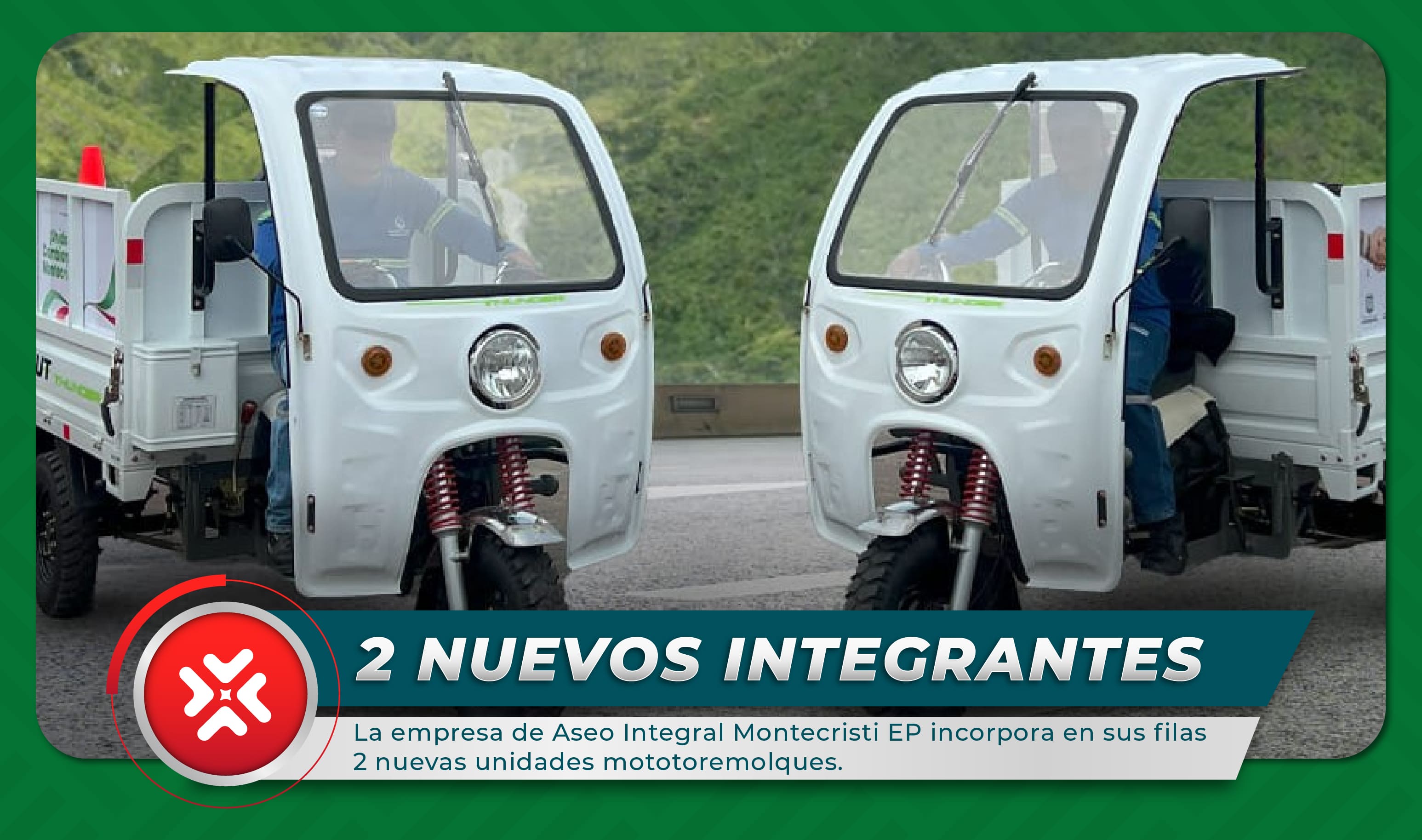 La Empresa Municipal de Aseo Integral Montecristi EP, incorpora a su flota de vehículos 2 nuevas unidades móviles para fortalecer el servicio de recolección de desechos sólidos. Con estos nuevos vehículos se pretende mejorar significativamente las respuestas o acciones inmediatas y a su vez contribuir con la limpieza de la ciudad, adicional estos vehículos serán destinados de forma planificada a la eliminación de una serie de vertederos clandestinos previamente identificados.